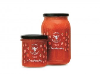 Miód z truskawką Pasieki Rodziny Sadowskich to pyszne połączenie naturalnego miodu wielokwiatowego z 3% liofilizowanej truskawki. Ten słodki przysmak polubią szczególnie dzieci. Dodatek liofilizowanych truskawek sprawia, że miód pachnie świeżo i soczyście, jak zerwane w ogrodzie owoce. Zawiera bogactwo minerałów i witamin ( A, B1, B2, B3, B6, C, E oraz kwas foliowy ), dzięki czemu doskonale uzupełnia dietę o niezbędne składniki. Wzmacnia odporność oraz pomaga regulować pracę układu trawiennego.