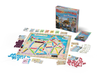 Wsiąść do pociągu: San Francisco to nowa odsłona popularnej serii gier rodzinnych, która idealne sprawdzi się na początek przygody z planszówkami. Gra polega na wyścigu przez malownicze ulice San Francisco, zwiedzeniu jak największej ilości punktów turystycznych oraz zebraniu najcenniejszych pamiątek.